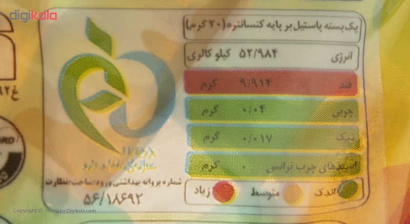 سایر توضیحات : ارزش غذایی در هر سهم: انرژی: 52.98 کیلوکالری قند: 9.914 گرم چربی: 0.04 گرم نمک: 0.0017 گرم اسیدهای چرب ترانس: 0 گرم