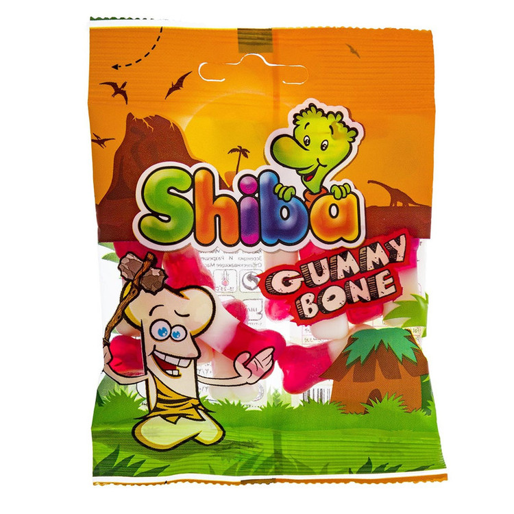مدل « Gummy Bone» از سری پاستیلهای «شیبا» حدود 35 گرم وزن دارد و طرح آن شبیه به تکهای استخوان است. این پاستیل طعمی شیرین دارد و ارزش غذایی آن در هر 100 گرم حدود 264 گرم است. این مدل از پاستیلهای شیبا از دو رنگ سفید و قرمز تشکیل شده و در نگاه اول شما را یاد یک تکه استخوان میاندازد. پاستیل از ترکیب ژلاتین، گلوکز، رنگ و طعمدهندههای مجاز تهیه میشود و فواید بسیار زیادی دارد. این خوراکی خوشمزه به دلیل وجود ژلاتین در آن، برای ترمیم مواد از دست رفته مفاصل و کاهش دردهای استخوانی مفید خواهد بود. همچنین پاستیل به خاطر داشتن ژلاتین در آن، ساختمان پروتئینی حاوی اسید آمینههای ضروری دارد و به بهبود سلامت بدن کمک خواهد کرد.