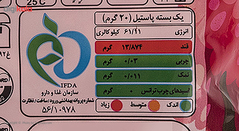 پاستیل میوهای مدل «Strawberry» از تولیدات خوشمزه و خاص برند «شیبا» است که با طعم شیرین و شکل جذابش، یکی از پرطرفدارترین تنقلات در میان کودکان و حتی بزرگسالان محسوب میشود. وجود ژلاتین در مواد اولیهی پاستیل موجب شده تا این مادهی غذایی لاستیکیشکل و نسبتا نرم باشد؛ بهاینترتیب در مقایسه با شکلاتها و آبنباتهای سفت، انتخابی بهتر است. پاستیل میوهای شیبا با طرح توتفرنگی در بسته 180 گرمی تولید شده است. این پاستیل 180 گرمی در هر 100 گرم حاوی 305.5 کیلوکالری انرژی، 6.68 گرم پروتئین، 69.73 گرم کربوهیدرات، 0.15 گرم چربی، 6.68 گرم پروتئین و 22.69 میلیگرم سدیم است. پاستیل توتفرنگی شیبا در بستهبندی پلاستیکی بستهبندیشده است و یک میان وعده جذاب و خوشمزه است که میتواند حسابی آنها را خوشحال کند.