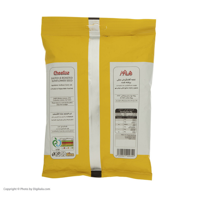 ارزش غذایی در هر 30 گرم انرژی : 85 کیلو کالری قند : 0.48 گرم چربی: 6.15 گرم نمک : 0.42 گرم اسید های چرب ترانس : 0 گرم