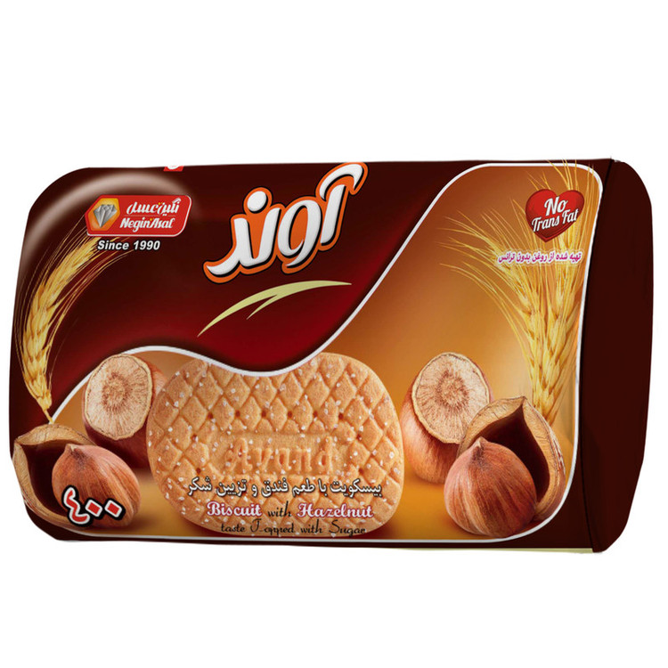 بیسکویت مدل 400 آوند تهیه شده از روغن بدون ترانس , با طعم فندق و تزیین شکر تغذیه ای مقوی برای میان وعده های شما می باشد . طعم فندق یکی از محبوب ترین طعم های این نوع بیسکویت است .