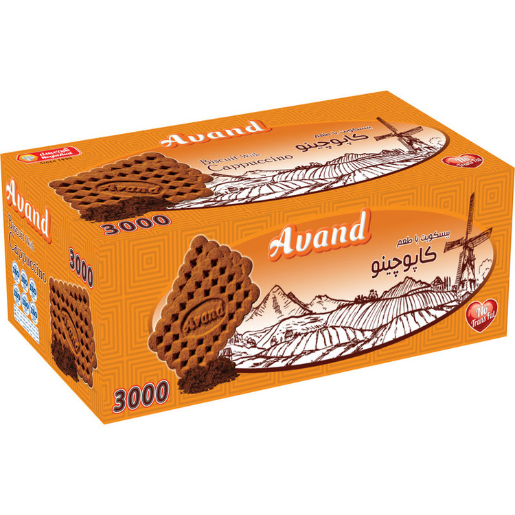 بیسکویت مدل 3000 آوند تهیه شده از روغن بدون ترانس , با طعم کاپوچینو مناسب استفاده در مهمانی ها و تغذیه ای مقوی برای میان وعده های شما می باشد . طعم کاپوچینو یکی از محبوب ترین طعم های این نوع بیسکویت است .