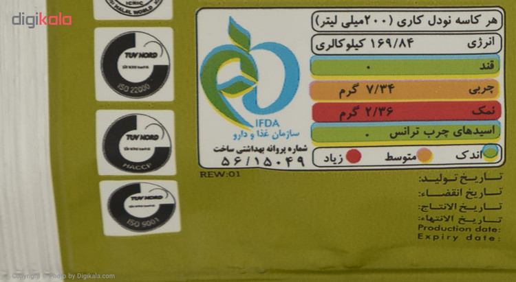 سایر توضیحات: ارزش غذایی محصول در هر 200 میلی لیتر:
